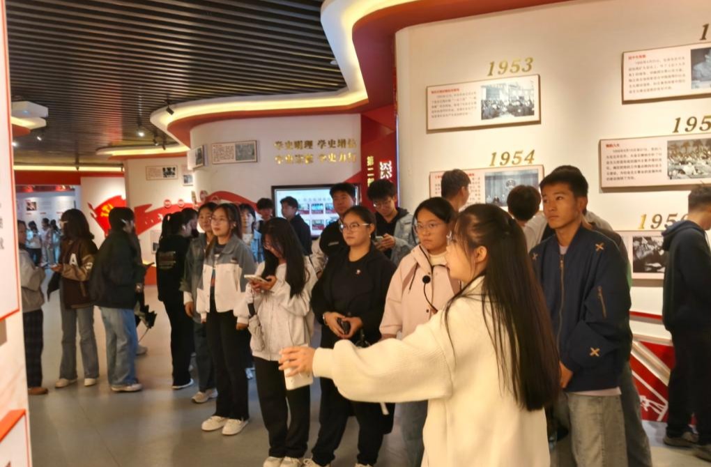 在讲解员的带领下,2025级新生们对校史馆、图书馆和红色文化教育体验馆的各个展区进行了认真参观。